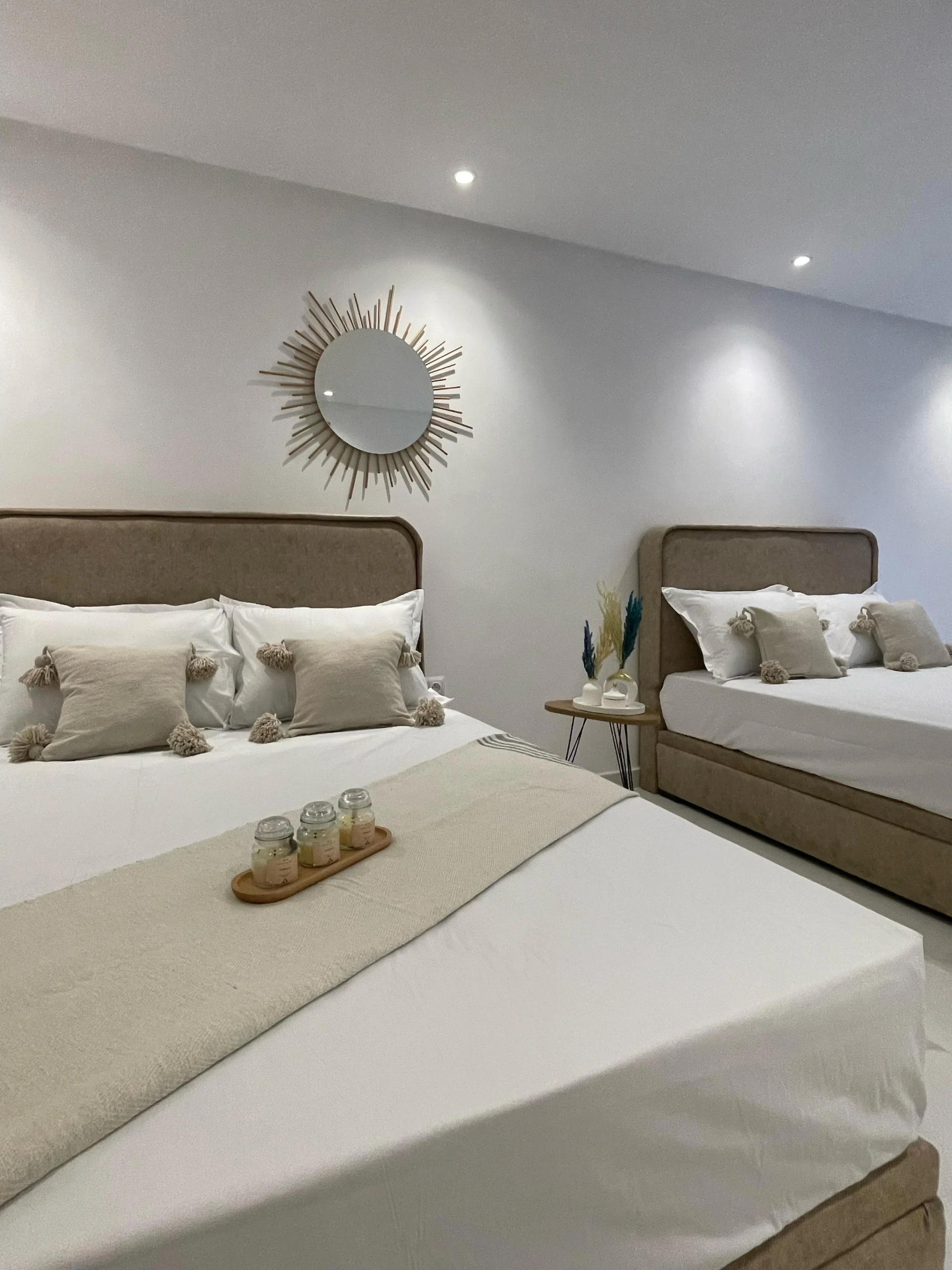 L’intérieur se compose de 6 suites luxueuses, chacune équipée de sa propre salle de bain et d’un balcon privé. Vous pourrez profiter d’un salon marocain lumineux pour vivre des moments chaleureux, ainsi que d’un salon européen élégant pour vos instants de détente.
