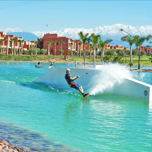 Découvrez le plaisir du wakeboard dans un cadre spectaculaire, au cœur de Marrakech. Sur un lac artificiel entouré de palmiers et avec les montagnes de l’Atlas en toile de fond, vivez une aventure pleine d’adrénaline, accessible aux débutants comme aux passionnés.